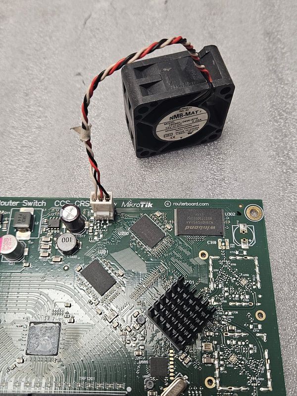 Благодаря умелым инженерам и наличию собственного склада запчастей и материалов, смогли провести монтаж блока питания для MikroTik CRS125-24G-1S-RM.